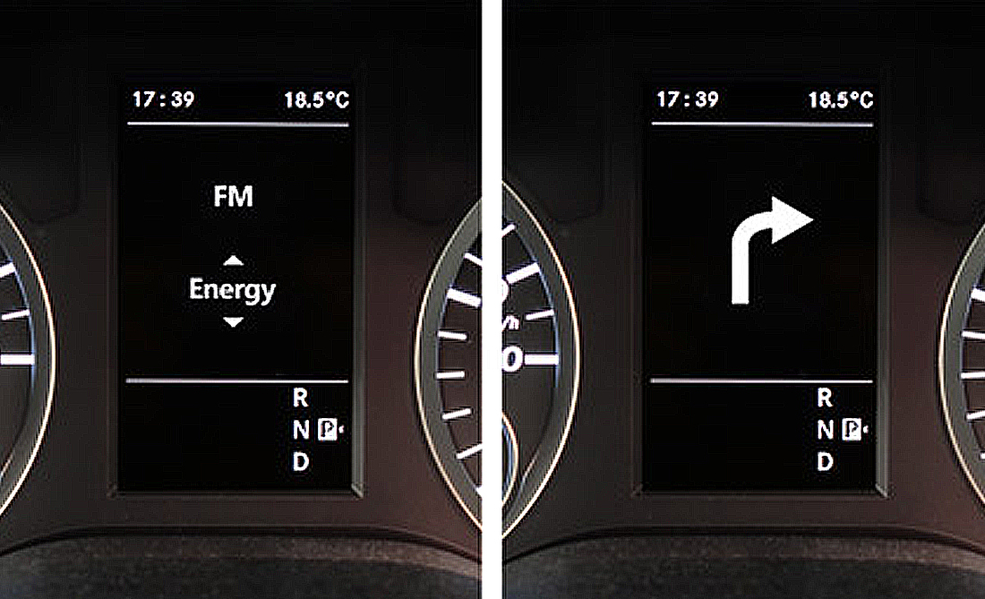 Støtte for avansert visning i bilens MDF-display (ved speedometer) f.eks pilvisning under navigasjon i google maps etc.