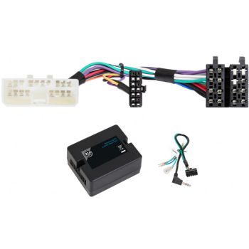 Kombinert rattfjernkontroll-adapter og ISO-overgang med elektronikk som kommuniserer mellom bilens elektronikk og en uorginal bilradio som støtter forskjellige funksjoner. Se liste over tilgjengelige funksjoner adapteren bevarer i bilen ved bytte av radio. Passer følgende bilmodeller: