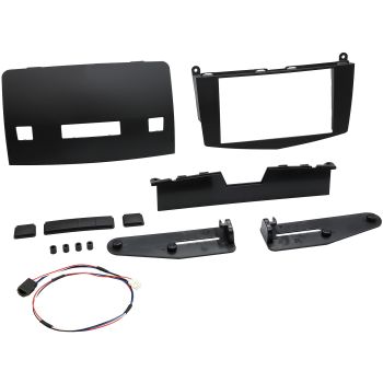 2-DIN radioadapter for å bygge om interiøret i en spesifikk bilmodell til standard DIN-hull slik at man kan montere en valgfri ettermarkedsradio i samme størrelse istedenfor den originalmonterte radioen.